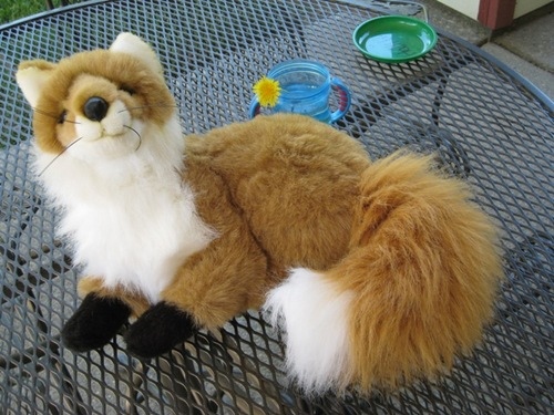星期五到了,得選玩具去學校跟小朋友分享,以柔選了她的兩隻狐狸。她的幼稚園總共四班,每班選一個動物當班名,她的班就是狐狸班,因此有一隻「班寵物」狐狸。年初當以柔生病住院,全班送了一隻跟「班寵物」一模一樣的狐狸,隔壁的同班同學Hailey自己有一隻狐狸,看到以柔生病,也央求媽媽多買一隻送給以柔。因此她才有兩隻狐狸。